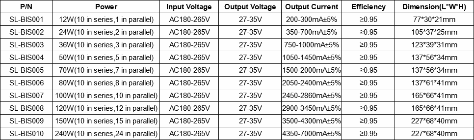 | Wattage | 12W or 24W or 36W or 50W or 70W or 80W or 100W or 120W or 150W or 240W |
