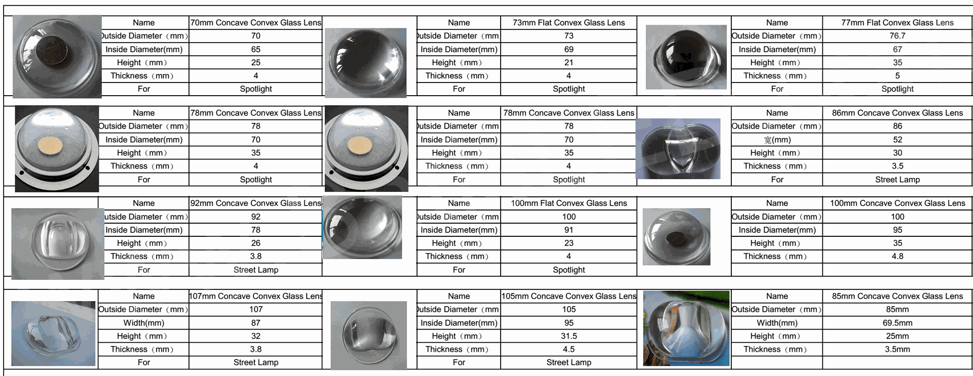 15-107mm Diameter Convex Lens 5-60 Degrees For LED Spotlights, Car Lights, Flashlights, And Projection Lamps