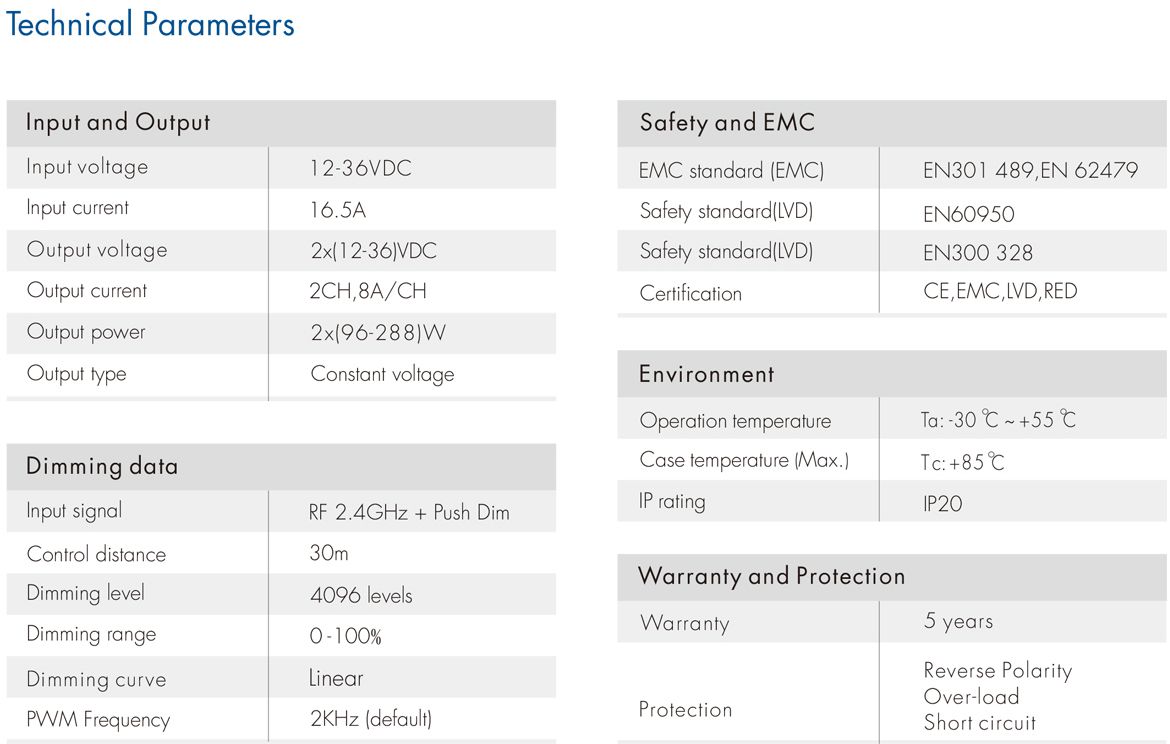 V2-L DC12-36V RF2.4G 2 Channel Single Color/Color Temperature Constant Voltage Controller