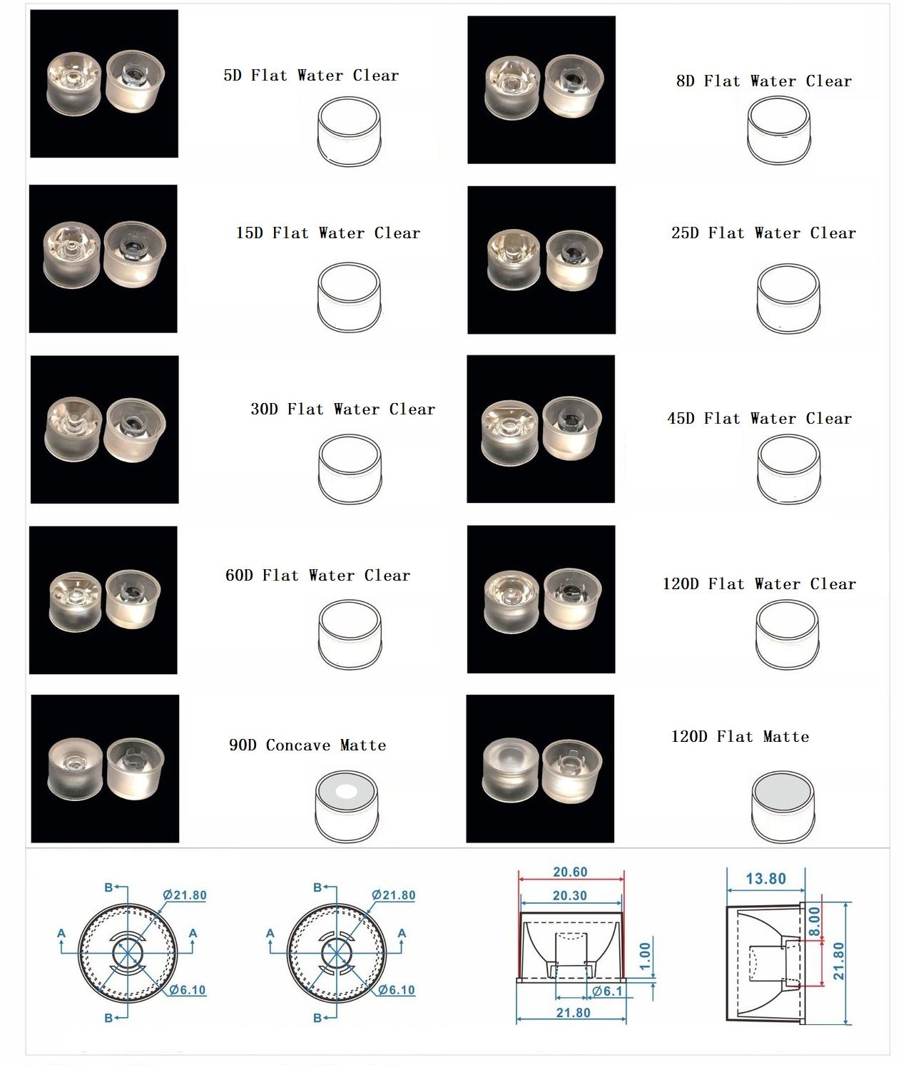 | Lens Type | Flat Water Clear or Flat Prism or Flat Matte or Flat Strip |
