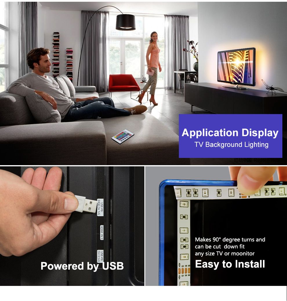 • Firmly Press the strip in desired place and Connect the USB to USB port.