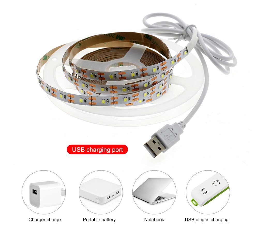 5V 2835 SMD USB Flexible LED Strip Emitting Warm White / White