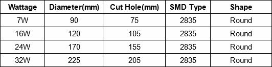 | Wattage | 7W or 16W or 24W or 32W |