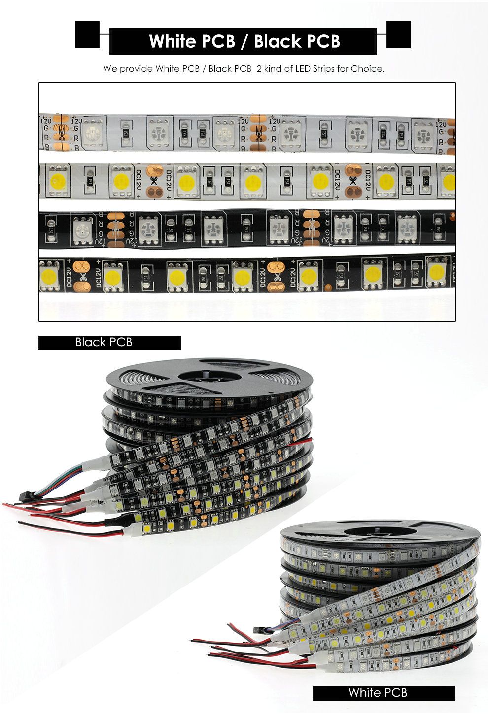 • We provide  Black PCB  and White PCB   2 kind of LED Strips for Choice.