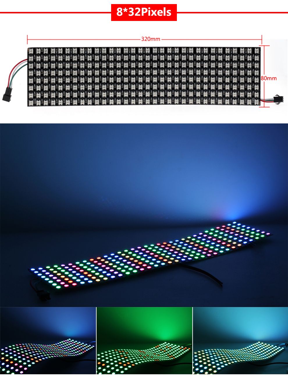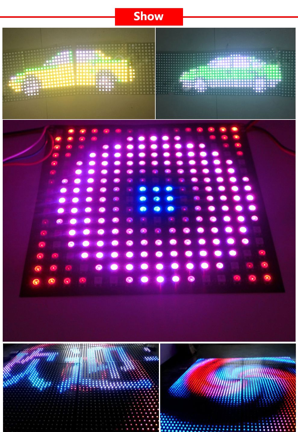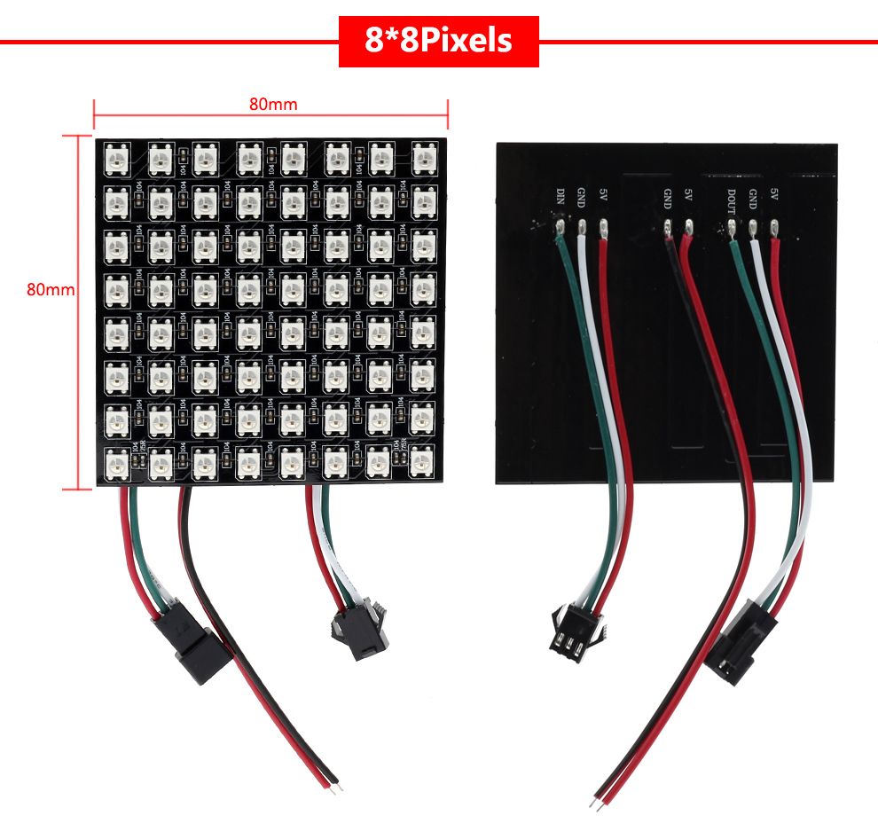 Pixels number: 8Pixels*8Pixels(64LEDs),16Pixels*16Pixels(256LEDs),8Pixels*32Pixels(256LEDs)
