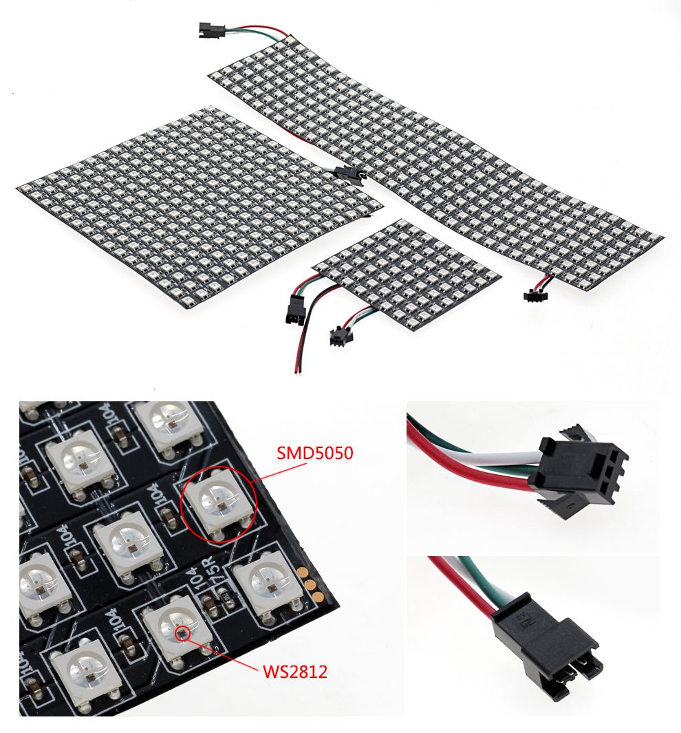 DC5V SMD 5050 RGB WS2812 Full Color Flexible Pixel Panel Screen Size 8*8 / 16*16 /8*32 64/256LEDs