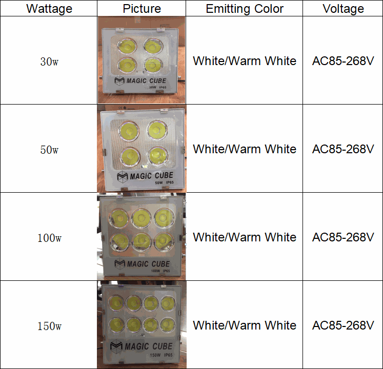 Wattage 30W or 50W or 100W or 150W