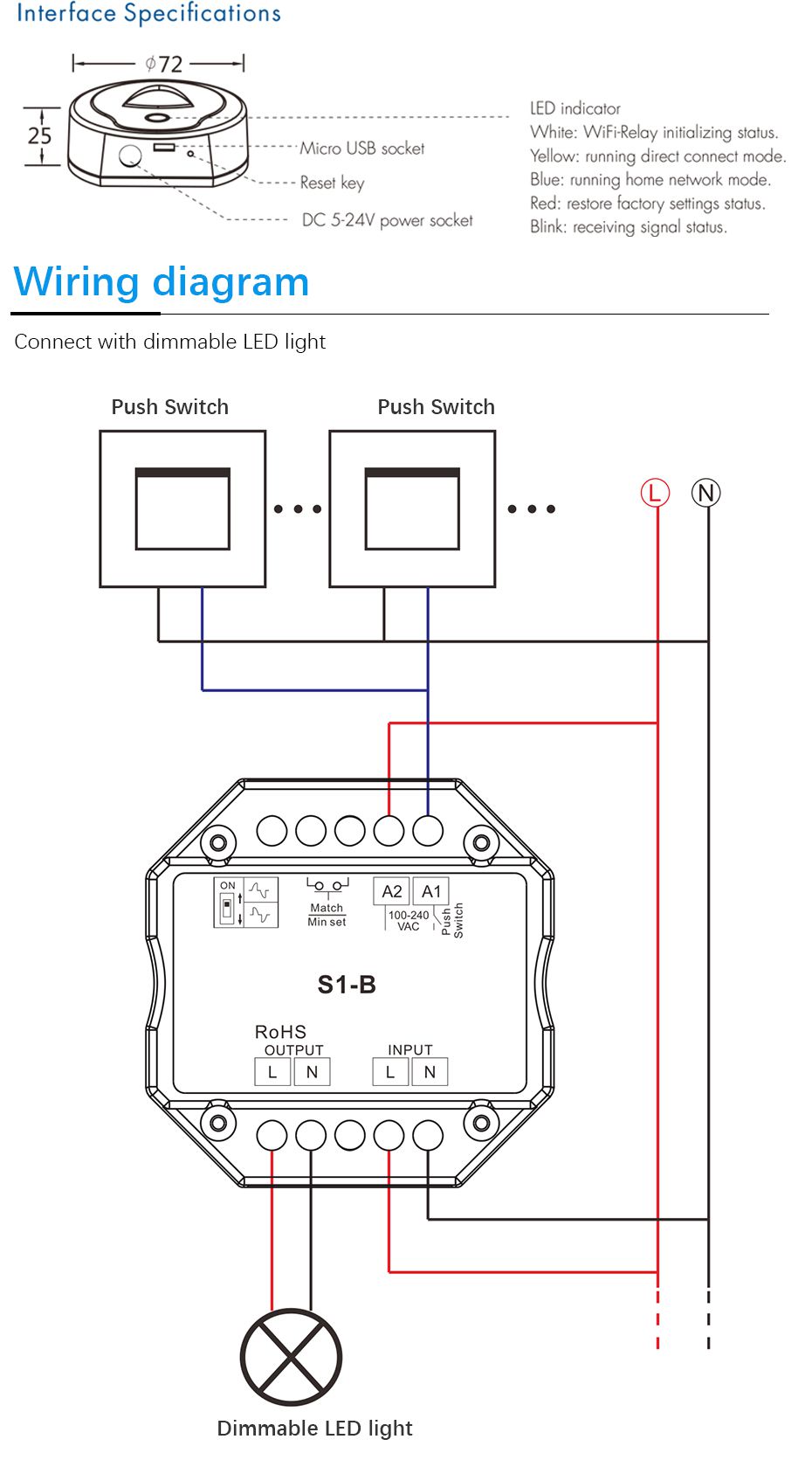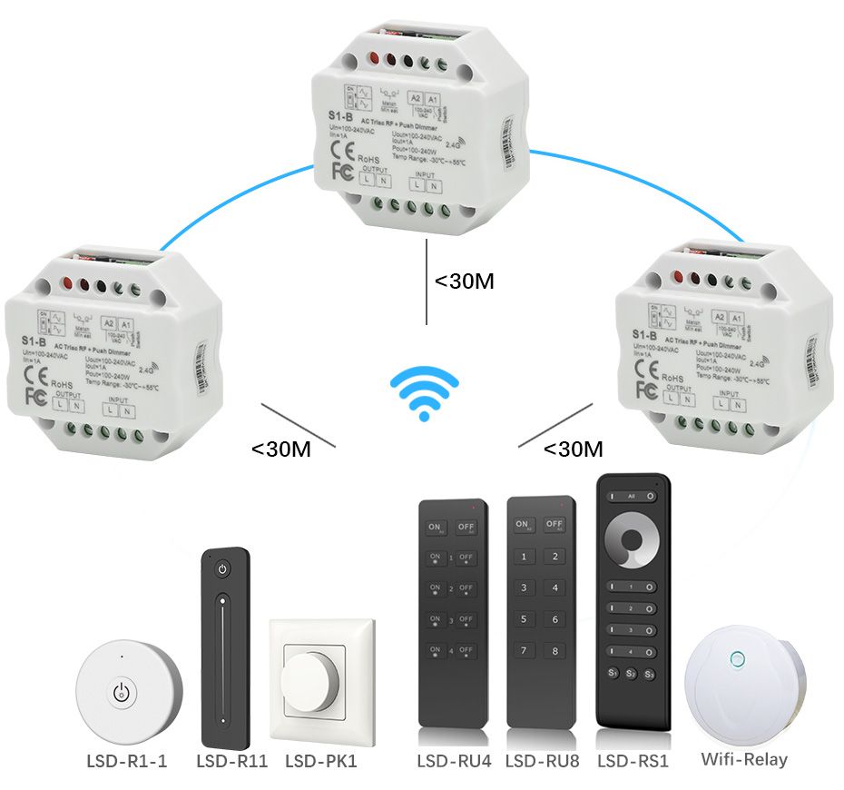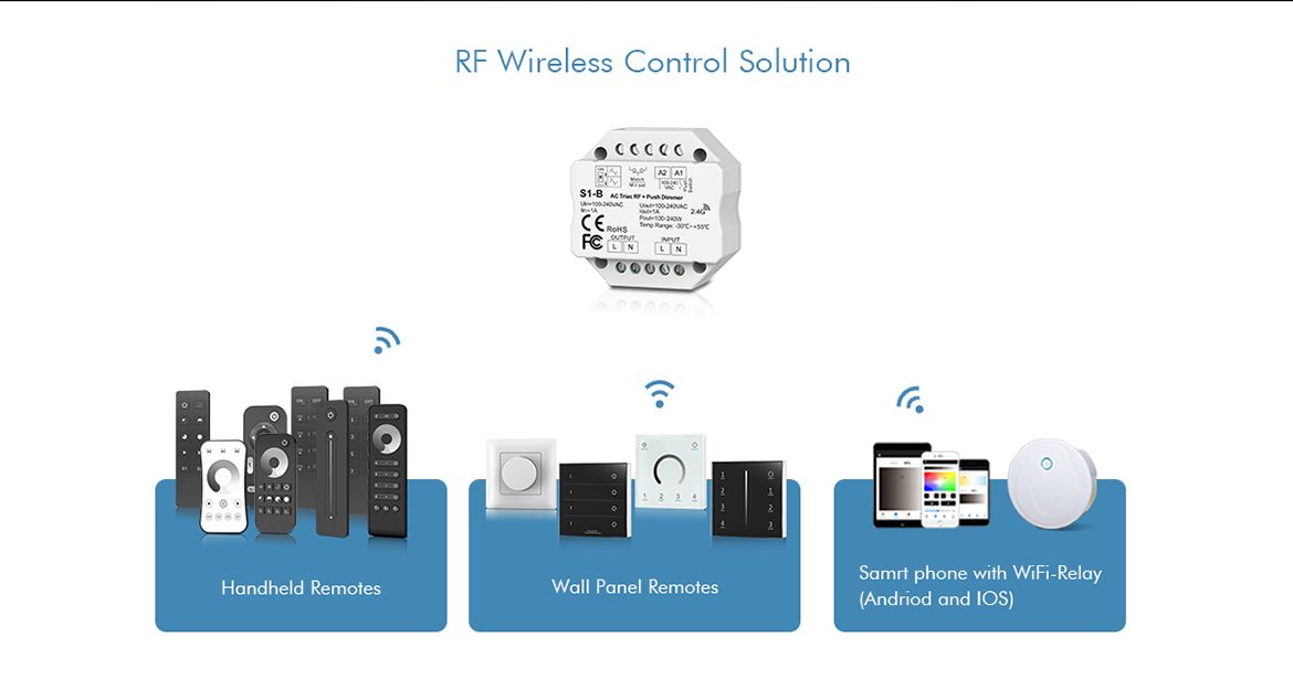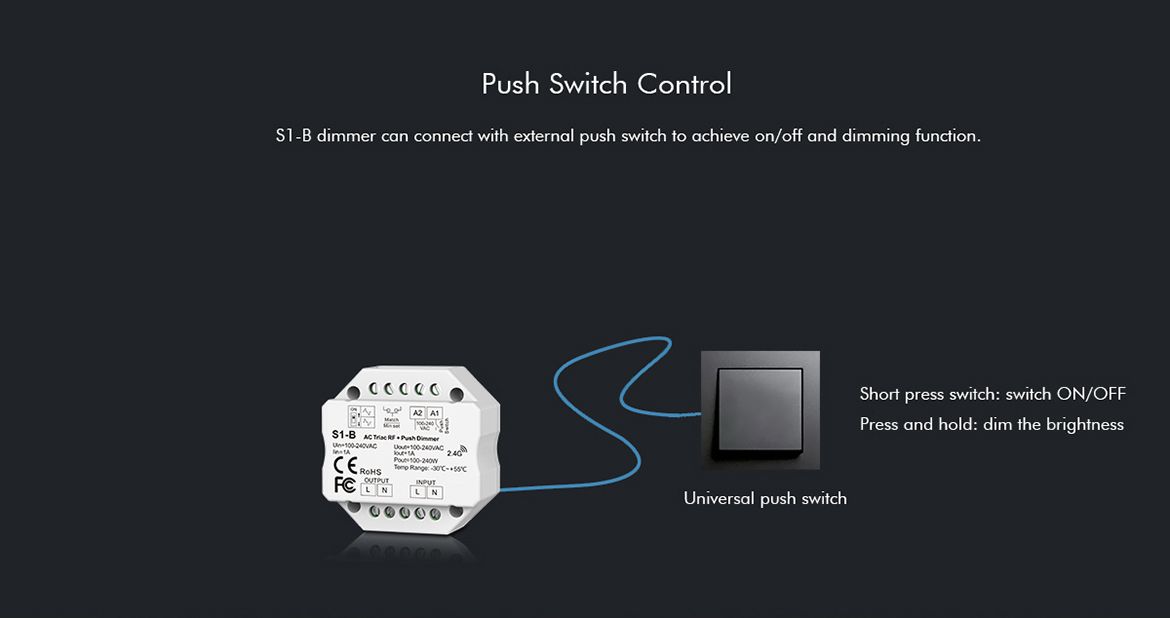 S1-B AC100-240V RF 2.4G Triac Dimmer Wifi Push Switch Dimming Control for LED Lamp
