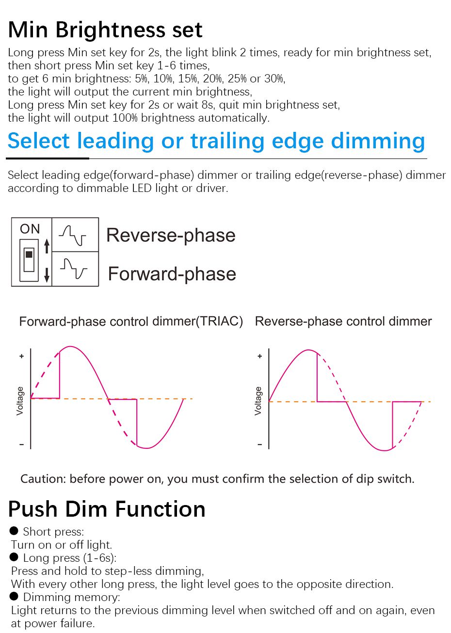 Leading edge dimming or trailing edge dimming set by dip switch.